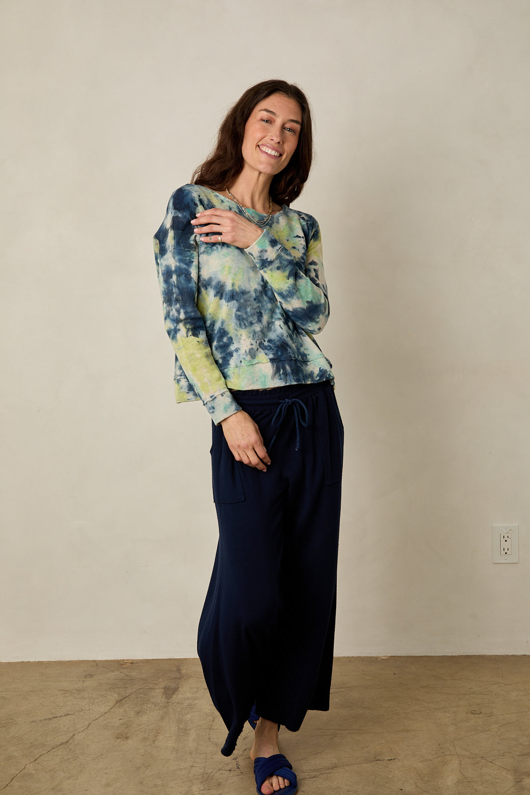 The dye pattern of the Camden V-neck tee is just as beautiful as the photo, if not more gorgeous. I’m glad I asked for advice about sizing since I wear an XS in the Super rad sweatshirt and an S in some other styles. The small is perfect, and I love the lighter weight modal tencel fabric which I will wear in all seasons including summer. I am a long-time River and Sky customer, and I am never disappointed!
