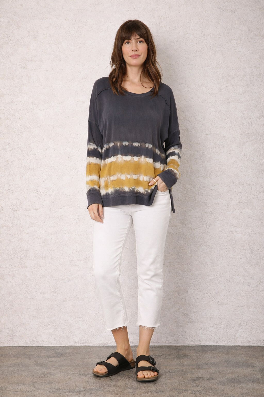 Elevate your denim with sweatshirts, tees, and more sustainable tops tie-dyed by hand.